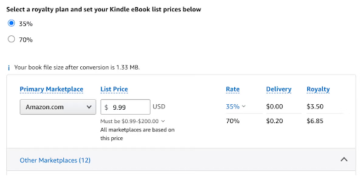 Hãy nhớ rằng, nếu giá sách của bạn trên 9,99 USD, thì bạn chỉ đủ điều kiện nhận mức bản quyền 35%.
