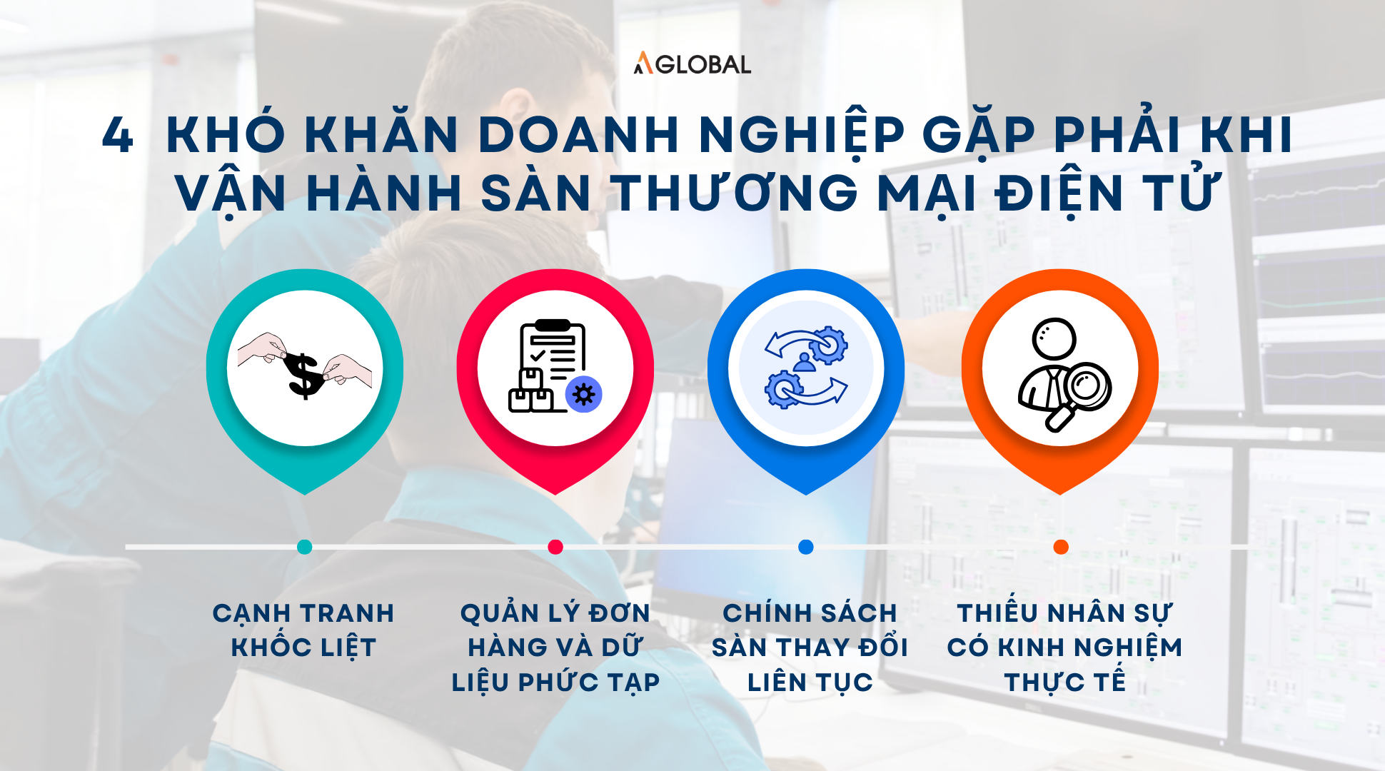 Trong quá trình vận hành sàn thương mại điện tử, doanh nghiệp còn phải đối mặt với nhiều thách thức phát sinh từ thị trường và nền tảng. Những khó khăn này có thể ảnh hưởng trực tiếp đến doanh số, hiệu suất vận hành và khả năng duy trì vị thế cạnh tranh.