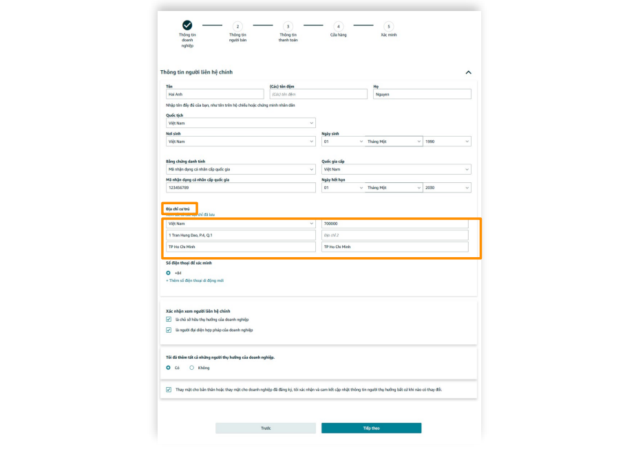 Step 1: Enter full details of the primary contact person (should be the company’s legal representative).