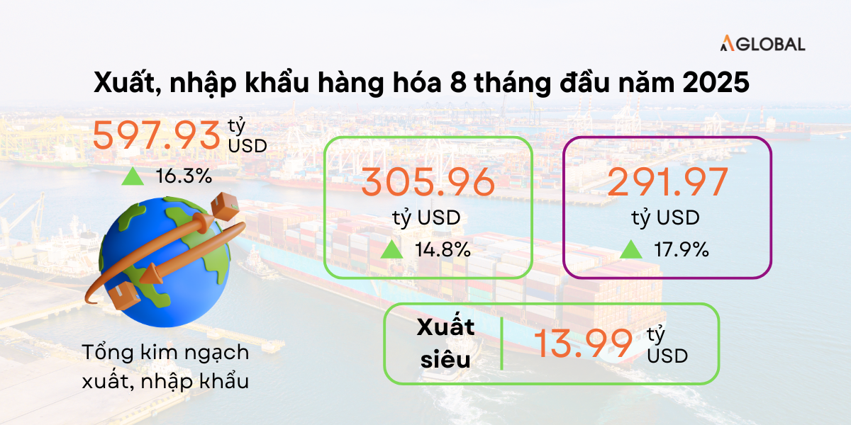 In 2025, Vietnam’s export activities continue to maintain positive growth momentum despite global economic fluctuations. In the first 8 months, export turnover reached more than USD 305.9 billion, up 14.8% year-on-year, demonstrating the strong resilience of Vietnamese goods in the global market.