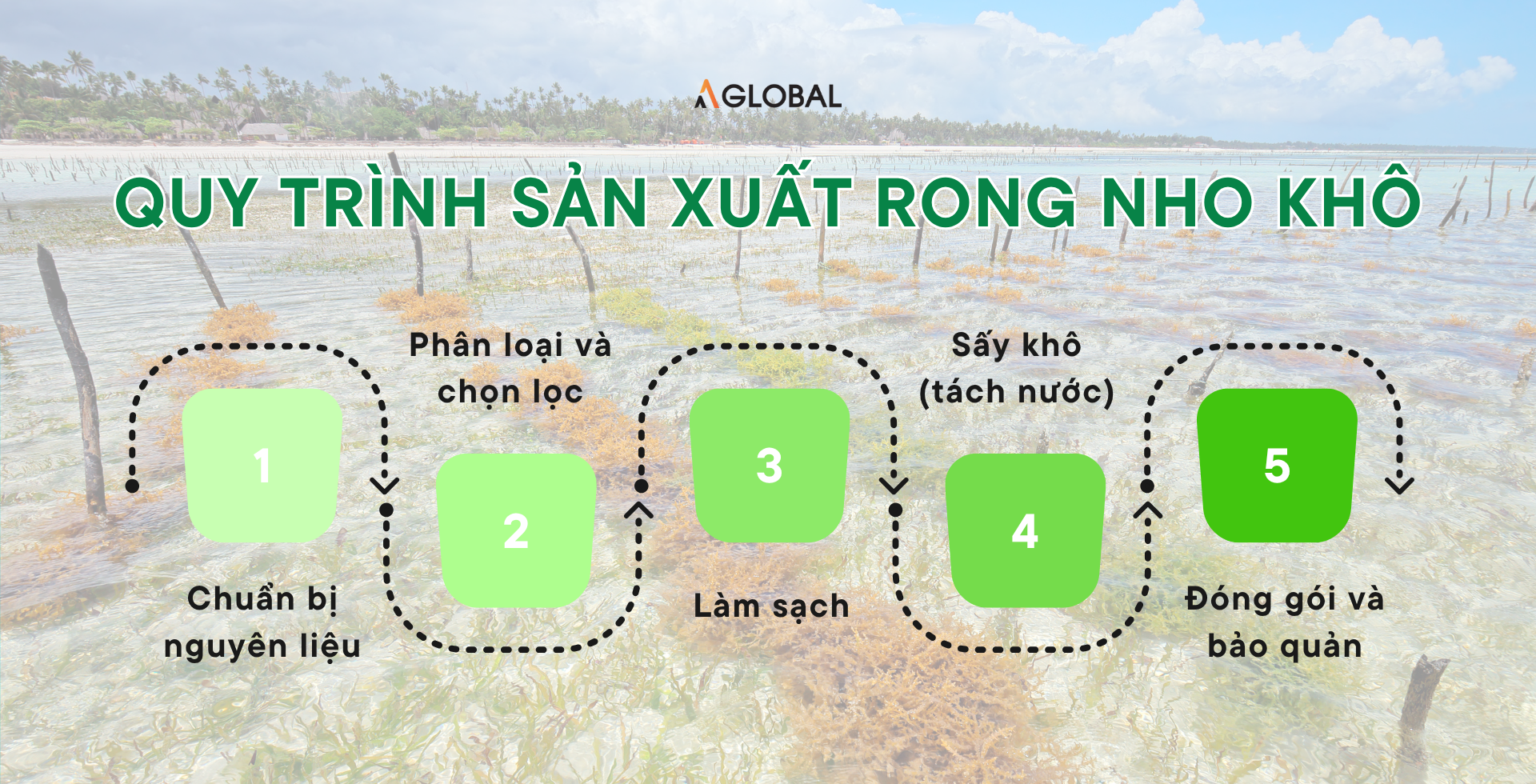 To produce high-quality and safe dried sea grape products, the production process is carried out strictly as follows: